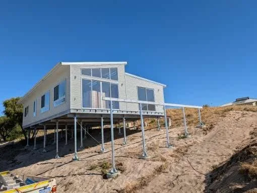On a beautiful property in Preston Beach, we installed a building owned by the client. Adding a huge deck structure and tropical roof.